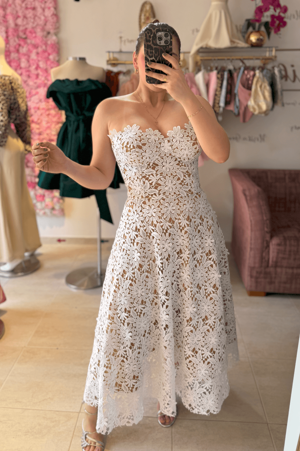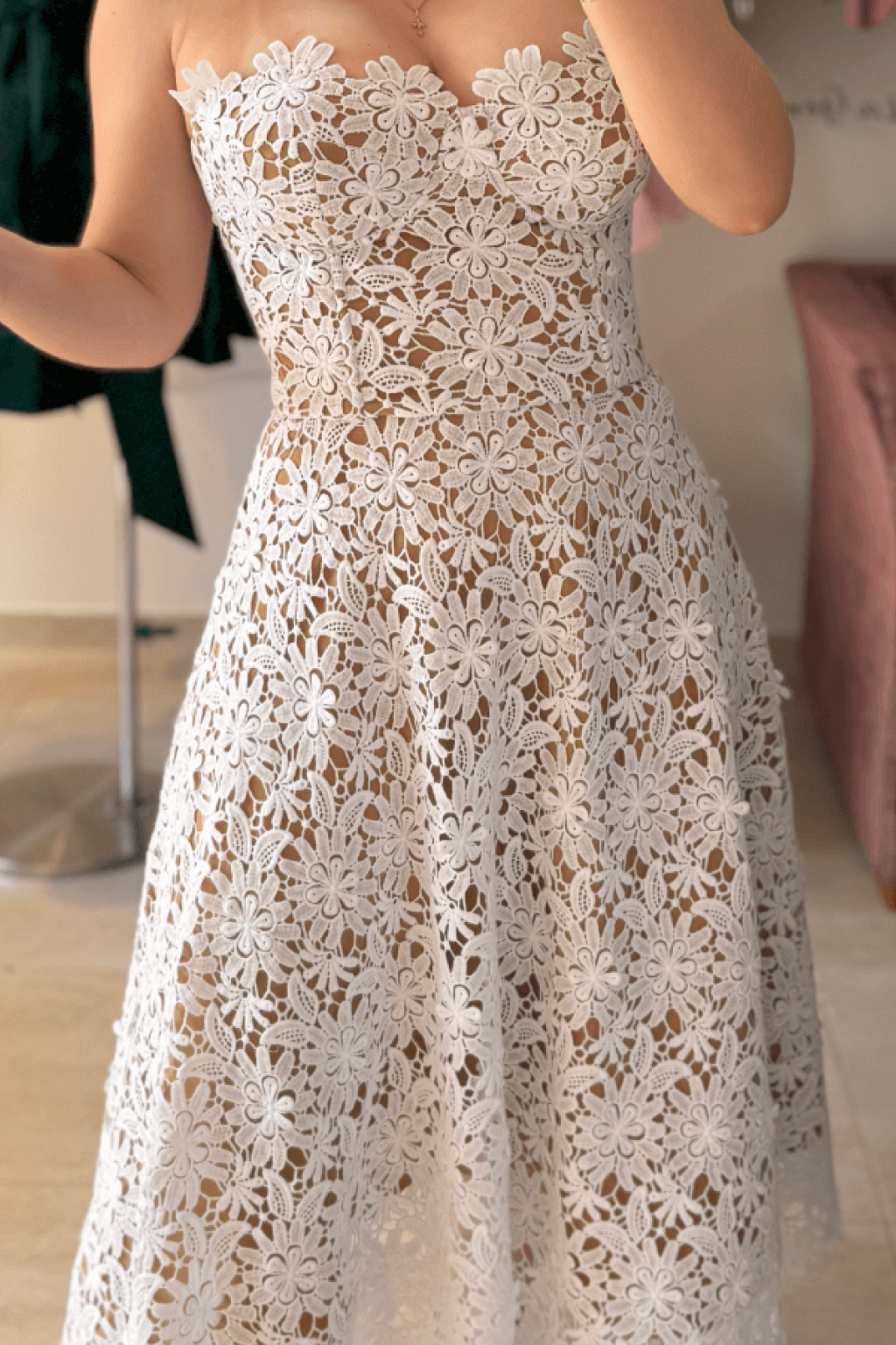 VESTIDO CORSÉ GUIPUR PETALS PERLA